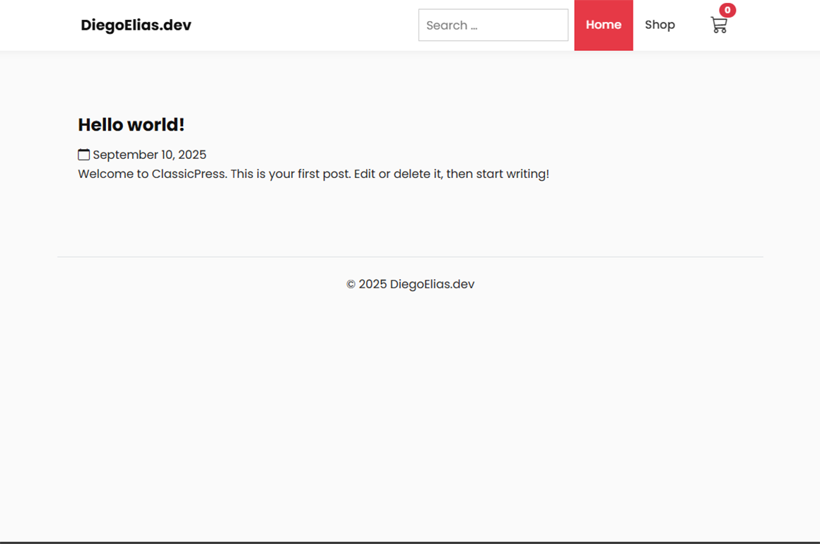 Un tema minimalista y ligero, diseñado originalmente para ClassicPress 2.5 con soporte completo para Classic Commerce.